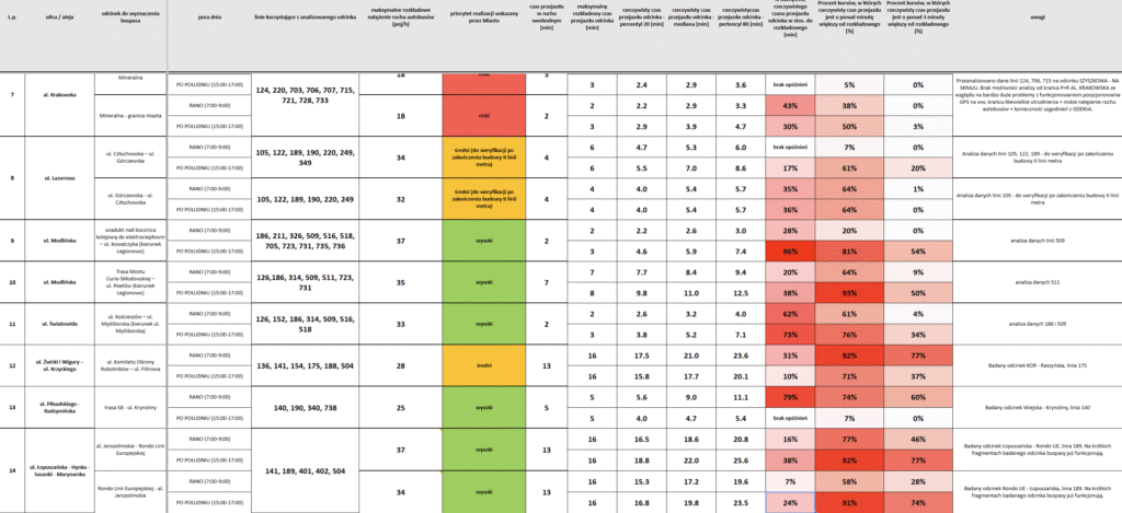 Screen z ujawnionej analizy ZTM pokazującej skalę opóźnień.